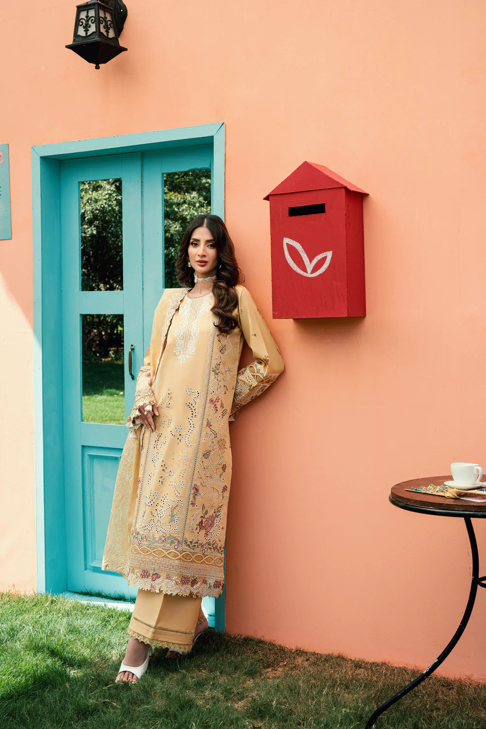 Experience the elegance of our Pakistani embroidered unstitched lawn suit from these luxury collections. This premium set features an intricately embroidered lawn shirt, luxe georgette chiffon dupatta, and delicate organza borders. Elevate your festive style with the finest quality from New Kabli Cloth.