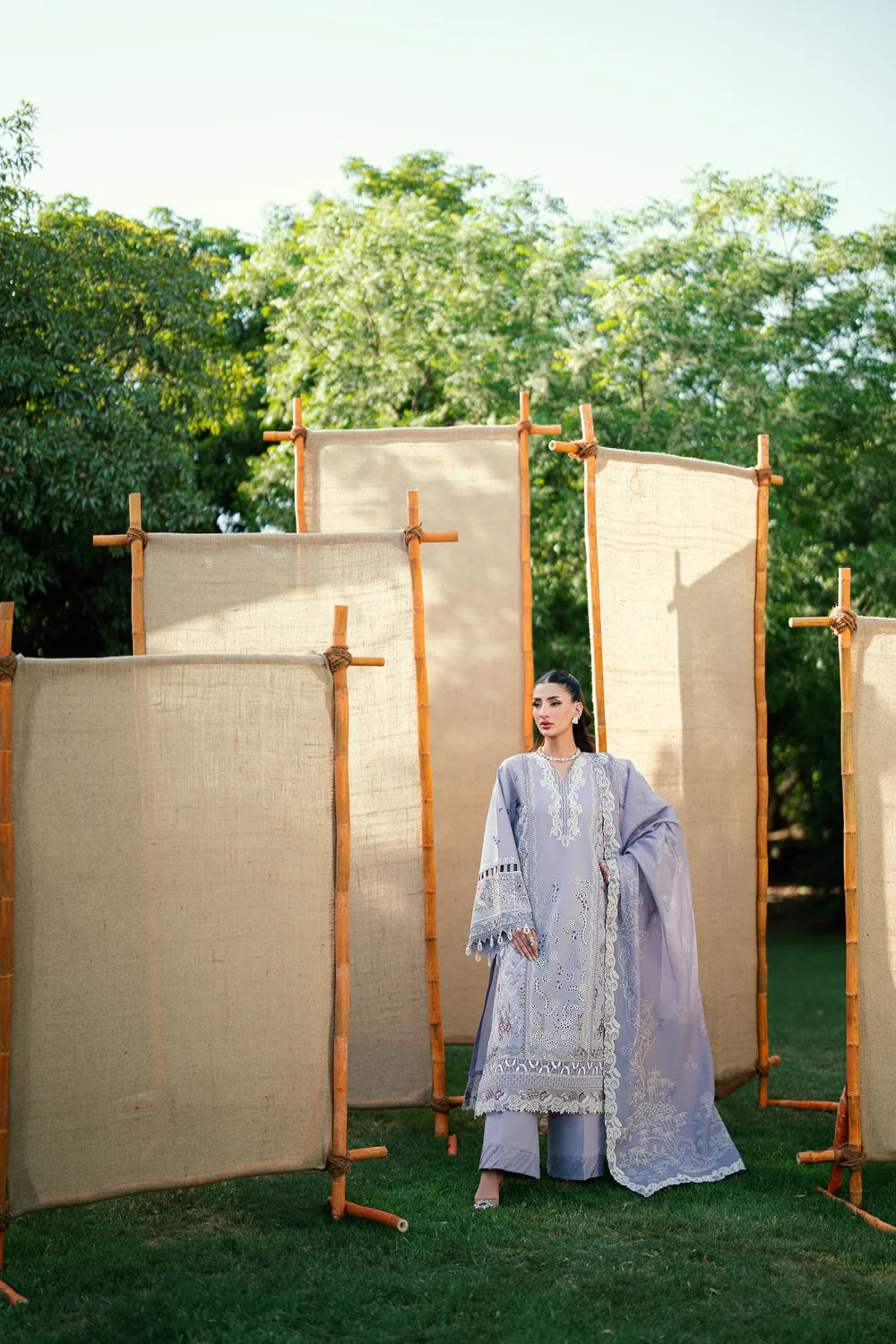Experience the elegance of our Pakistani embroidered unstitched lawn suit from these luxury collections. This premium set features an intricately embroidered lawn shirt, luxe georgette chiffon dupatta, and delicate organza borders. Elevate your festive style with the finest quality from New Kabli Cloth.